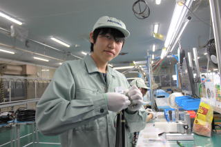 ケーブルの端末加工や端子部分の保護をするためのモールド作業などを担当しています。具体的には、コンビニのバーコードリーダーに使われる部品を手掛けることもあり、日常生活の中で自分の仕事の成果を目にする瞬間にやりがいを感じています。
